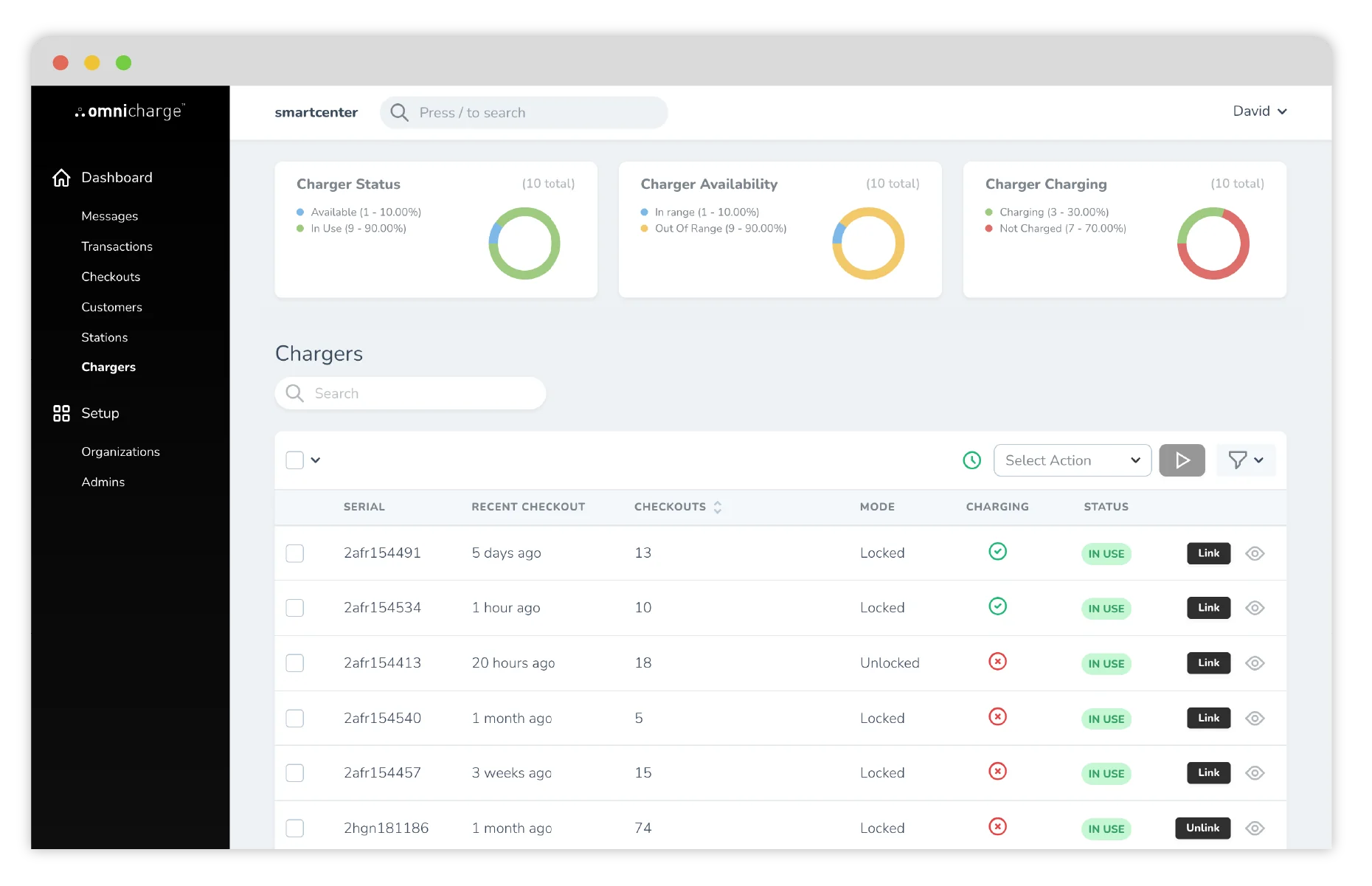 Let your users check out chargers using the Omnicharge app. With self-service checkout, you can leave your stations unattended, and let the system manage your checkouts and returns with your own rental policies.
