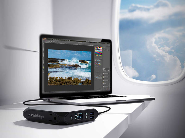 The Omni 20+ can be brought with you in your carry-on luggage. It's capacity (20,00mAh/71Wh) falls well within the Federal Aviation Administration's safety limit of 100Wh.